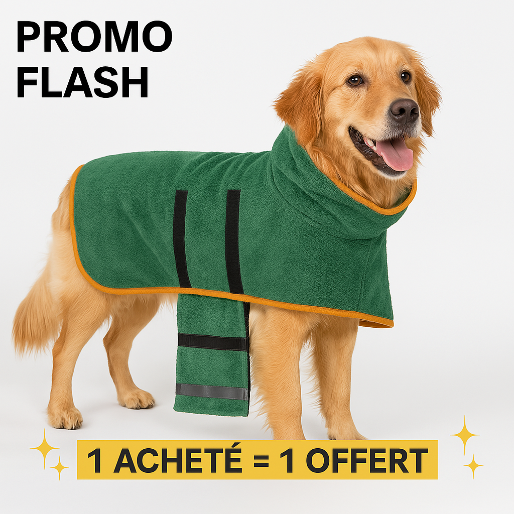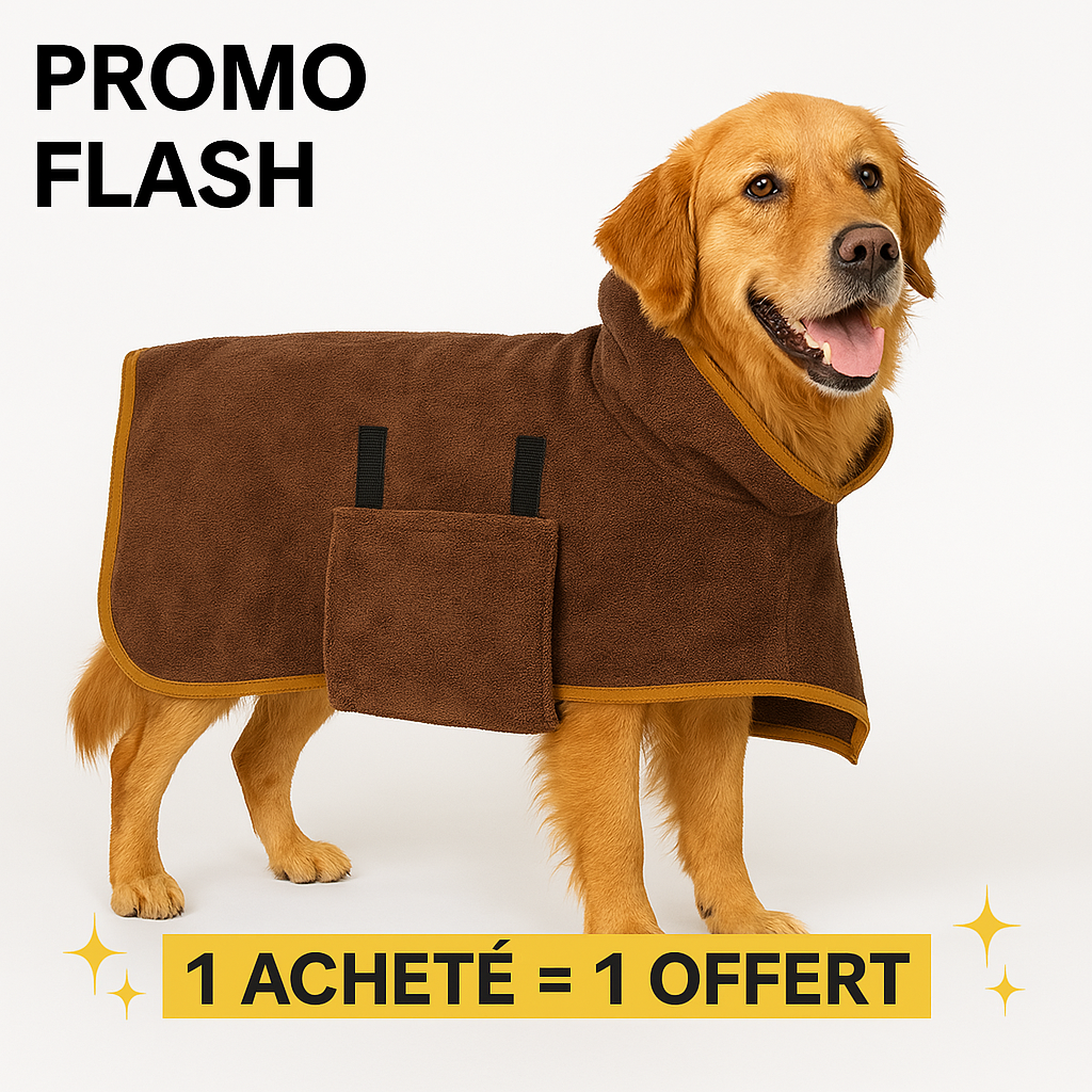 Arrêtez de vous battre avec des serviette inefficaces et offrez lui le luxe d'un séchage rapide et d'un confort ultime avec notre Peignoir PuppyWrap.