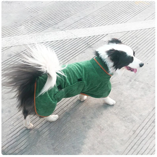 Avec notre peignoir pour chien, nous offrons à votre animal une douceur et une absorption optimales après chaque bain ou promenade sous la pluie.